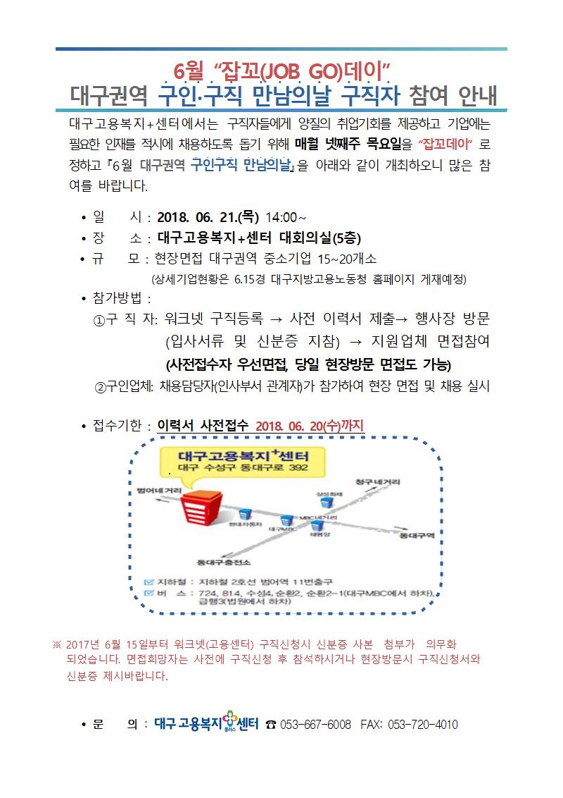 “잡꼬(JOB GO)데이” 6월 대구권역 구인구직 만남의날