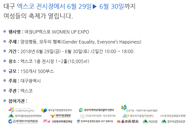 2018 여성UP엑스포 WOMEN UP EXPO 양성평등 모두의 행복