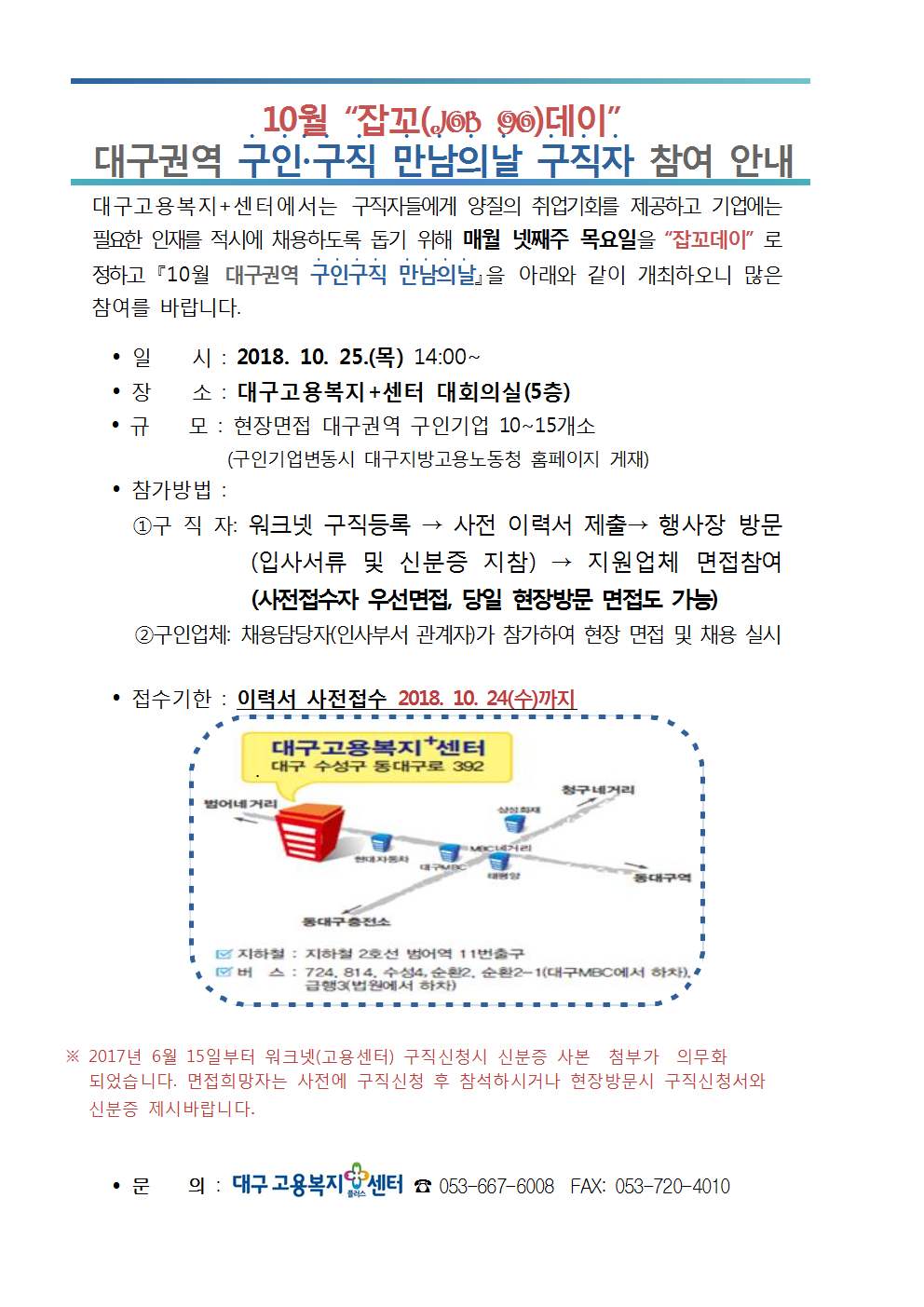 “잡꼬(JOB GO)데이” 10월 대구권역 구인구직 만남의날